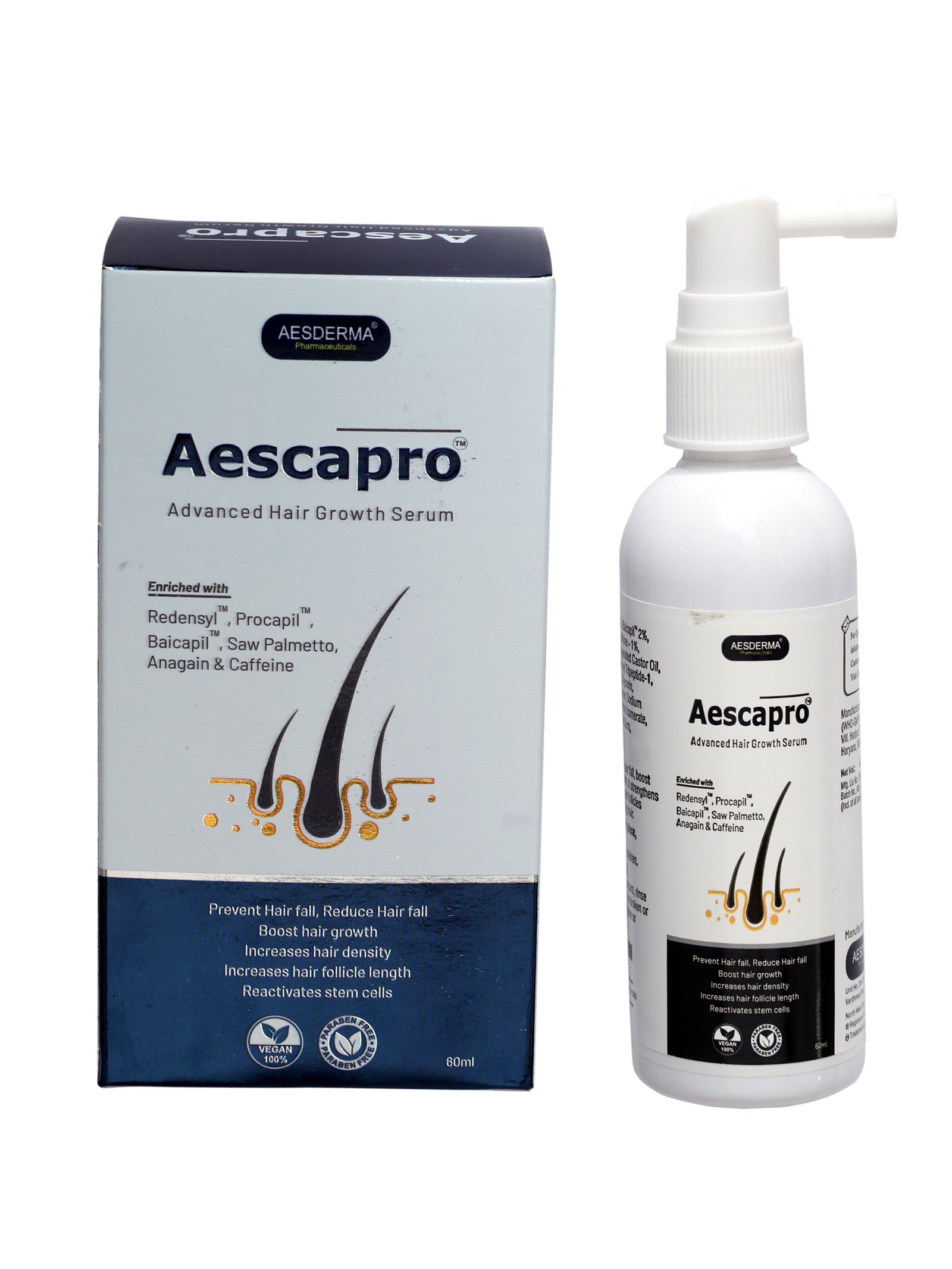 AESCAPRO hair serum is formulated as a powerful, multi-action formula designed to promote hair growth and reduce hair loss.